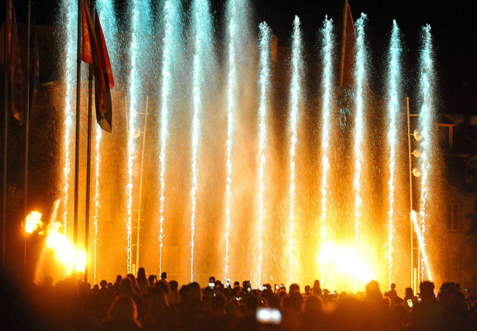Création d'un spectacle de jets d'eau et de flammes timecodé pour la ville de Colmar lors de son évènement annuel des Oasis de l'Été. Via Aquatique Show